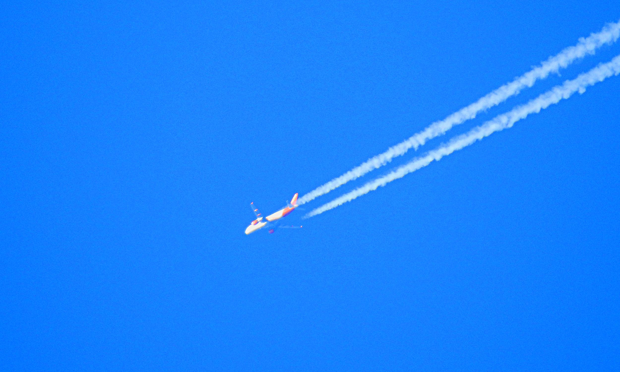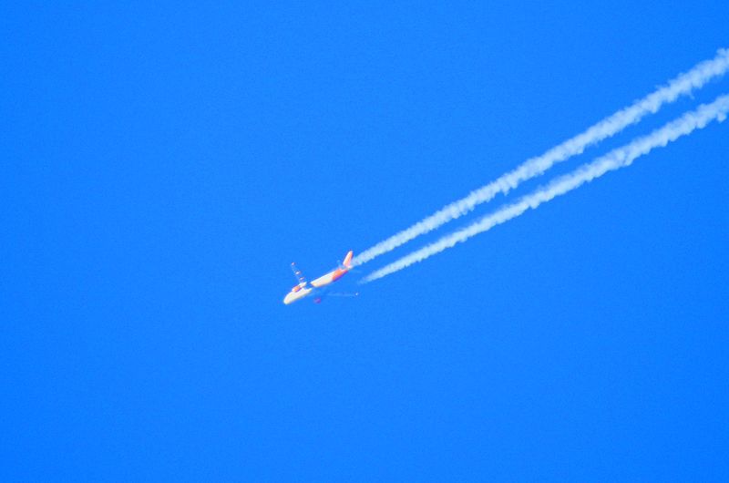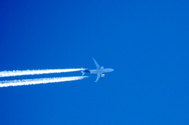Zuerst scheint es nur ein winziger Punkt am Himmel zu sein. Erst beim Heranzoomen mit der Kamera erkennt man, dass es sich um ein Flugzeug handelt. Die App „FlightRadar24“ zeigt die Flugroute und die Höhe in englischen Einheiten (Feet) an. Die Fotos haben oft keine optimale Qualität. Ob das an der Kamera oder an der Technik des Fotografen liegt, lässt sich nicht eindeutig sagen. Man sollte allerdings bedenken, dass 35.000 Fuß über 10.000 Metern entsprechen.
